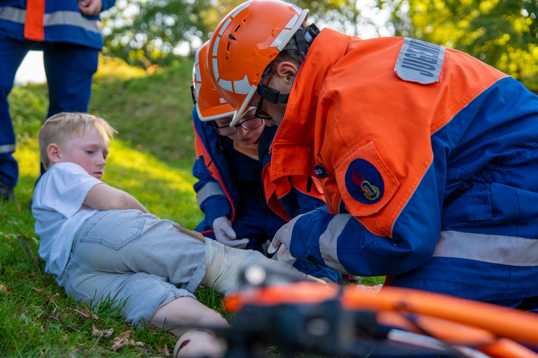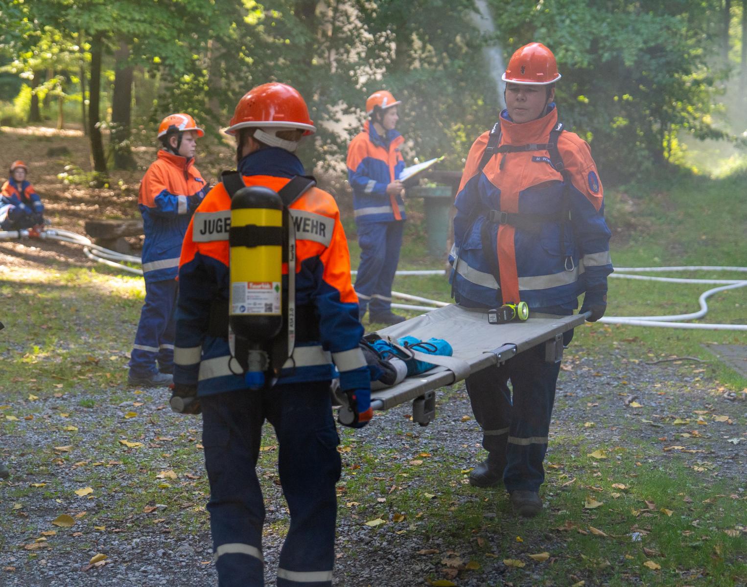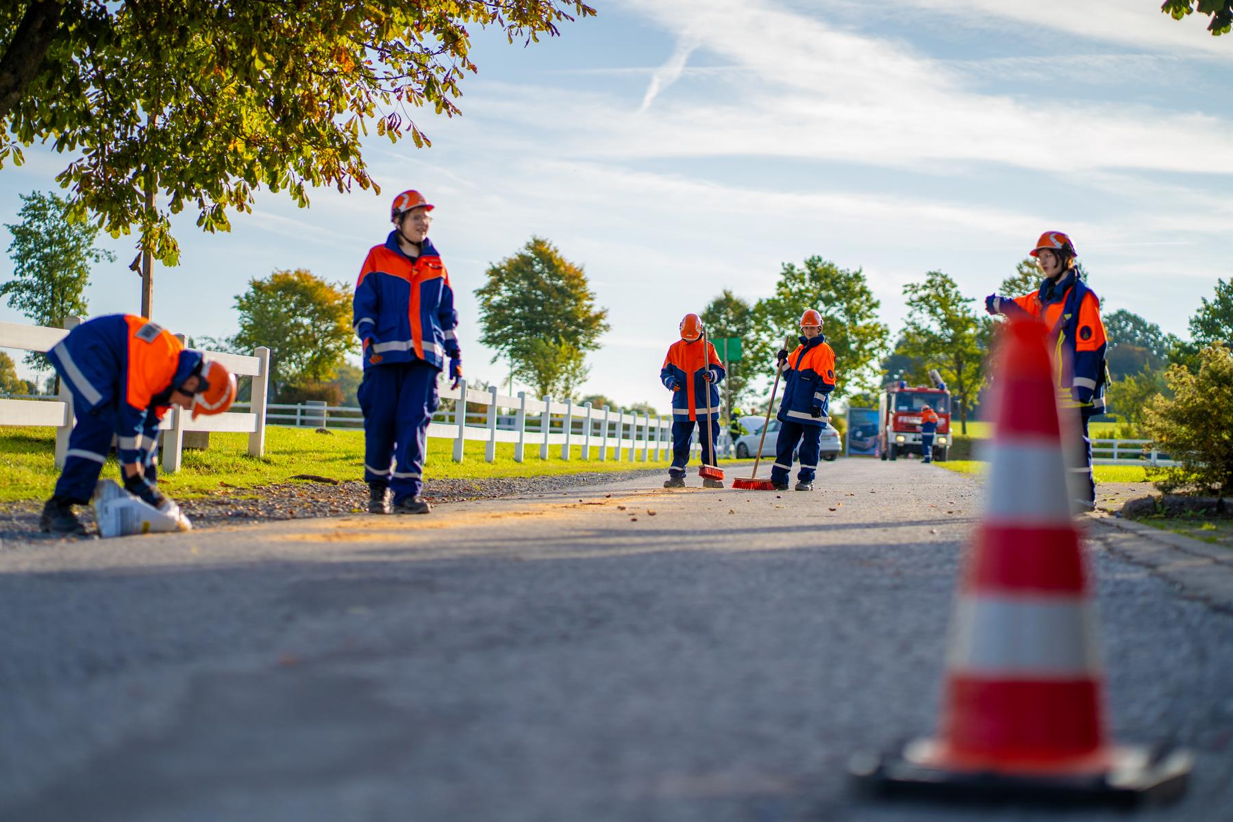Über Funkmelder und Lautsprecherdurchsagen wurden die Nachwuchskräfte zu unterschiedlichen Einsatzszenarien alarmiert. In den frühen Morgenstunden galt es beispielsweise, einen Mülleimerbrand auf dem Marktplatz zu löschen. Auch die Erste Hilfe kam nicht zu kurz: Nach einem simulierten Fahrradunfall versorgten die Jugendlichen zwei verletzte Personen vorbildlich. Insgesamt meisterten die Gruppen drei technische Hilfeleistungen und vier Brandeinsätze.
