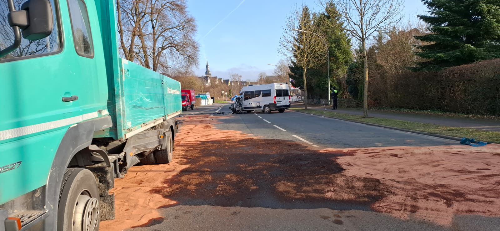 Kurz vor Mittag wurden die Kameraden der LG Mülheim/ Sichtigvor zu einem Verkehrsunfall auf die Möhnestraße gerufen. Ein Wohnmobil war mit einem entgegenkommenden LKW kollidiert. Dabei ist der Fahrer des Wohnmobiles in seinem Fahrzeug eingeschlossen worden und konnte glücklicherweise schnell von den Kammeraden befreit und an den Rettungsdienst übergeben werden. Des Weiteren wurden großflächig ausgelaufene Betriebsstoffe abgestreut.