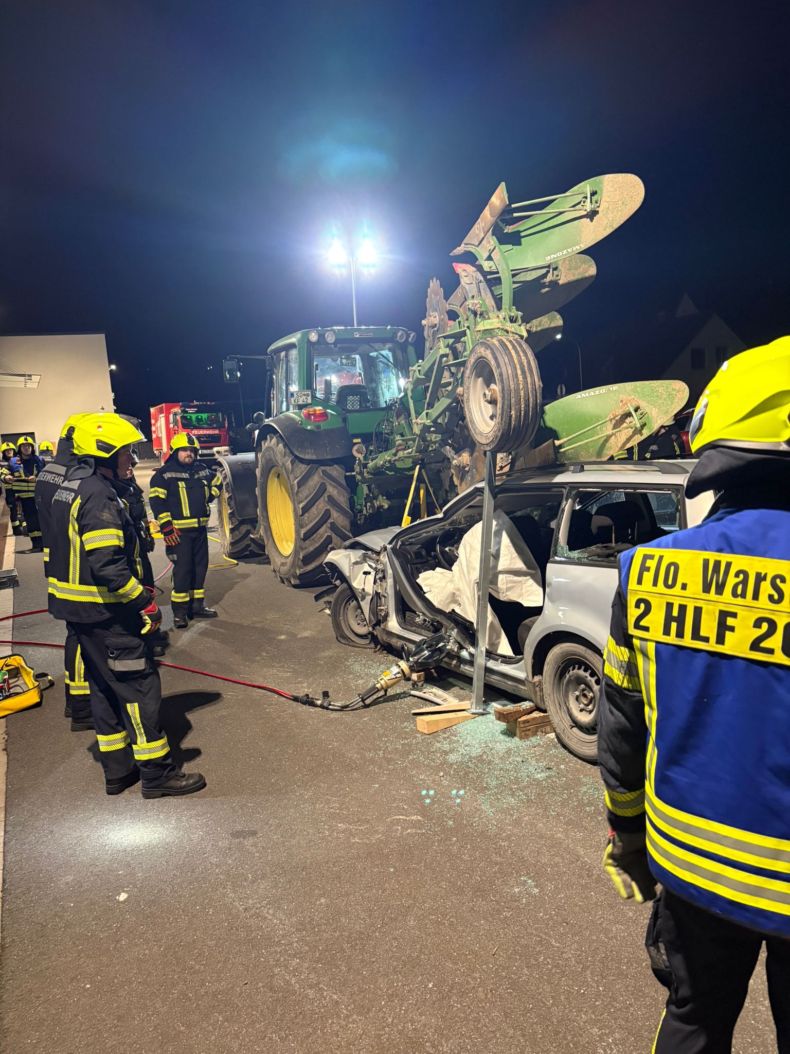 Nach der Stabilisierung des PKW’s, sowie des landwirtschaftlichen Gerätes, konnten die Kameraden mit einer schnellen zeitkontrollierten Rettung beginnen.